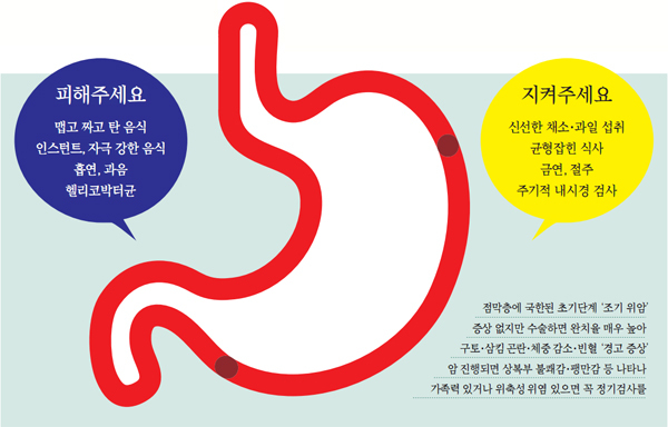 그리고 내시경 검사에서 위축성 위염이나 장상피화생이 있다면, 금연, 금주와 더불어 건강한 식습관으로 바꾸어 나가도록 노력해야 할 것입니다.