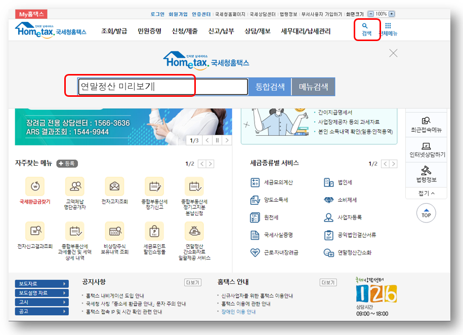 홈택스 연말정산 미리보기 서비스 이용 방법