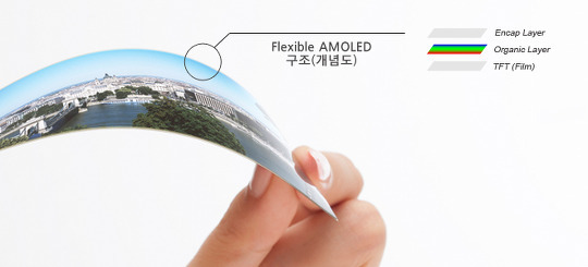 AMOLED는 Active Matrix Organic Light Emitting Device의 약자입니다. 우리말로는 능동 행렬 유기발광 다이오드라고 합니다. AMOLED는 전기를 공급하면 스스로 발광하므로 백라이트가 필요 없습니다. 자체적으로 레드, 그린, 블루 빛을 발하므로 LCD에 사용하는 컬러필터도 필요 없습니다. 결과적으로 AMOLED 패널은 아주 얇게 만들 수 있습니다.