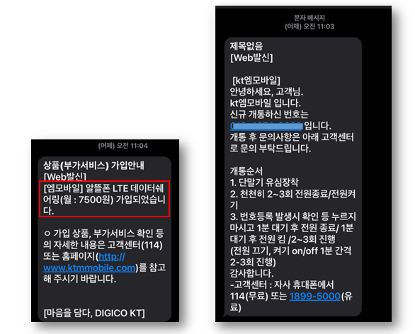 이상 kt M모바일 개통완료내용입니다.