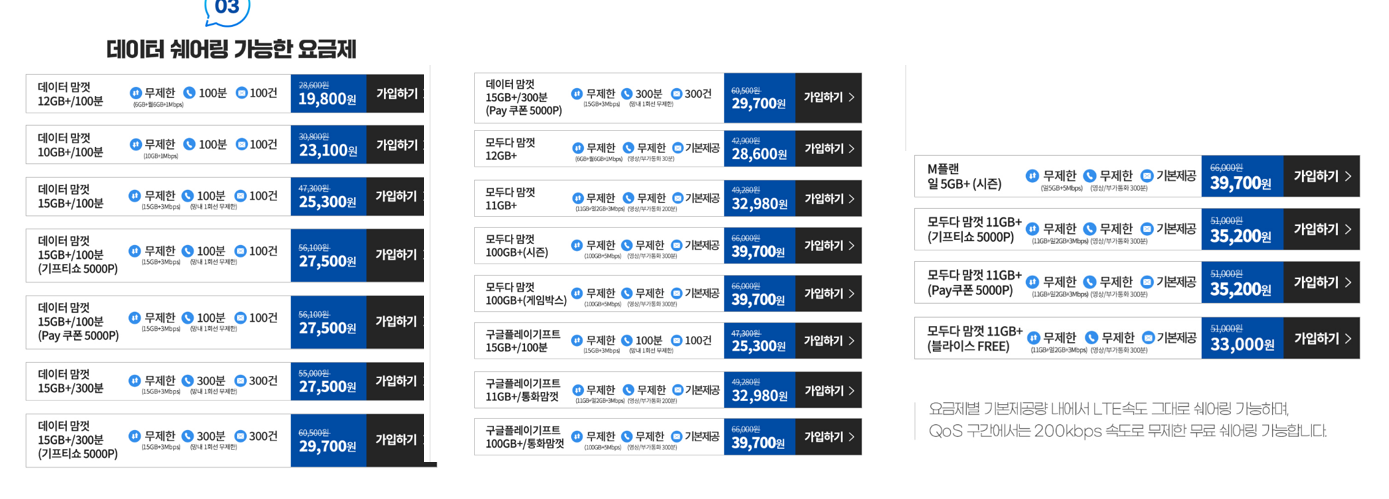 아래 글은 KT, SKT, LG유플러스 데이터 쉐어링 요금제에 대한 설명입니다.