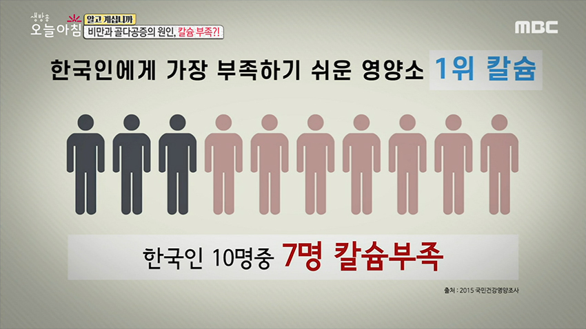 첫째, 칼슘이 적게 들어있는 음식만 먹는 경우입니다. 컬슘이 많이 들어 있는 음식으로 흔히 우유를 이야기합니다. 최근에는 고칼슘 우유도 나옵니다. 그럼에도 칼슘이 부족한 것은 이 외에 칼슘이 풍부한 식물성 식품도 많이 먹어야 하는데 식물성 식품의 섭취는 예전에 비해 많이 줄었기 때문입니다. 쉽게 만든 인스턴트 음식이나 구운 고기 등 고열량 식품은 먹지만 나물이나 녹황색 채소는 섭취량은 눈에 띄게 줄었기 때문입니다.