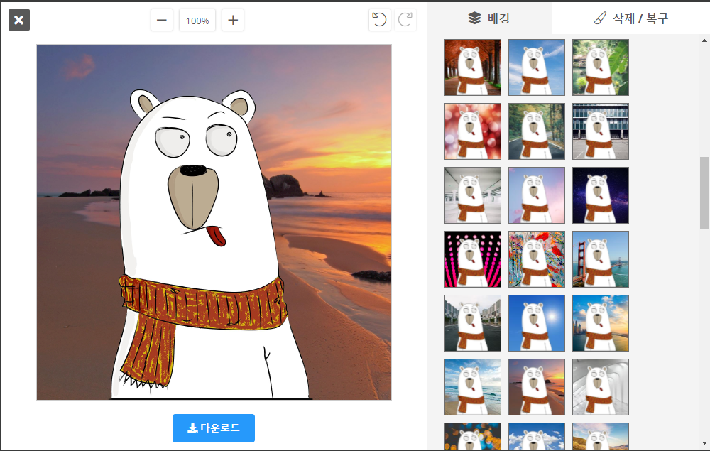 3. 다양한 배경을 선택할 수 있습니다. 저는 석양이 지는 해변가를 선택했습니다. 선택이 결정되었으면 아래쪽 [다운로드]를 클릭합니다.