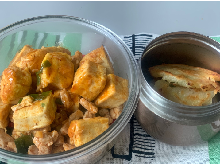 13. 갑자기 나갈 일이 생겨서 도시락으로 싸 보았습니다. 예쁘게 플레이팅하고 사진 찍는 법도 매워야겠네요 ㅠㅠ. 그래도 맛은 있었답니다. 짜지 않아 밥 없이 감자전과 두부 돼지고기 조림만 먹었는데 탄수화물을 피한 것 같아 흐뭇했어요~
