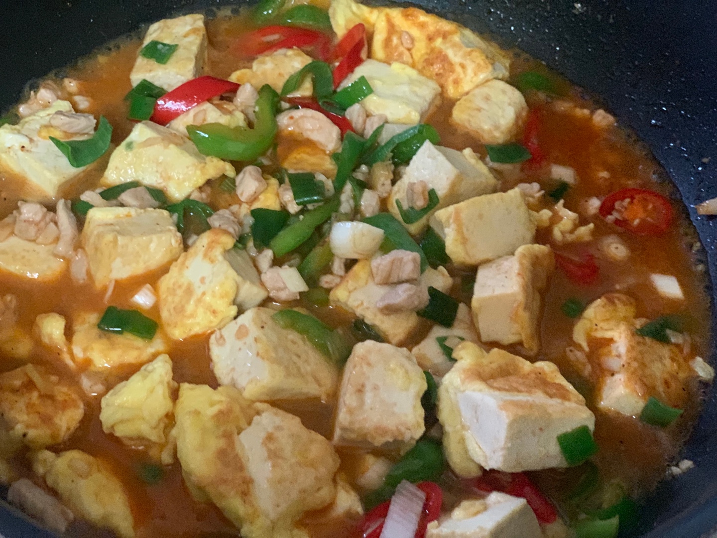 준비할 기본 재료: 두부 반모, 계란 2개, 돼지고기 조금, 파, 마늘, 홍고추, 먹고 남은 피망 조각