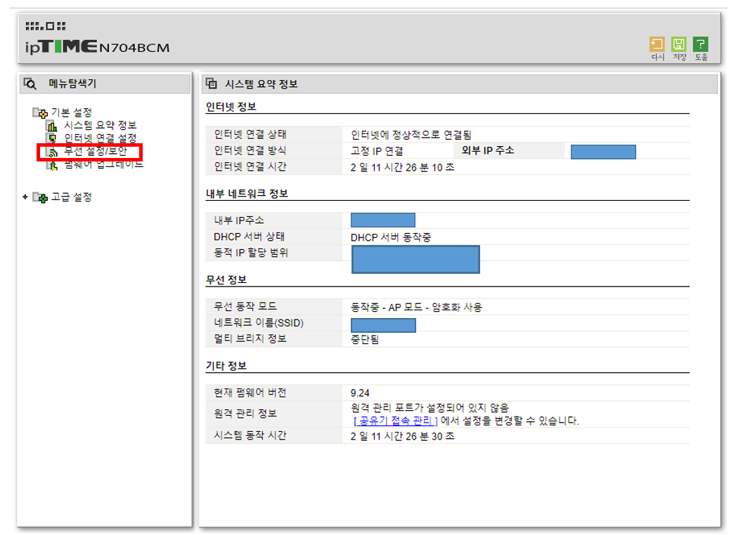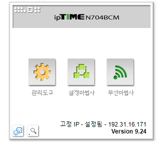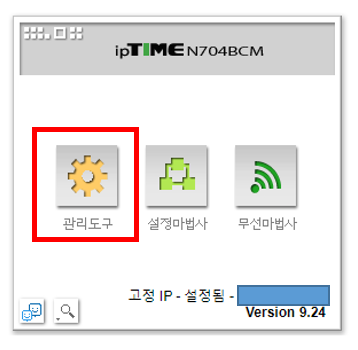 2. 로그인을 하면 아래 그림처럼 ipTIME 관리자 도구가 나타납니다.