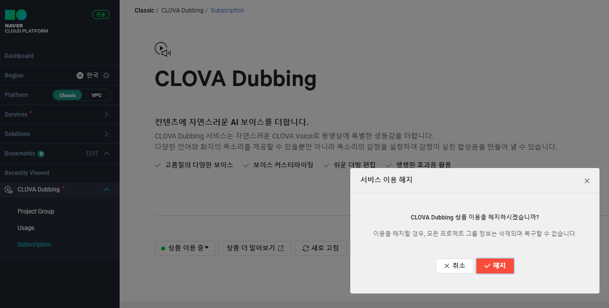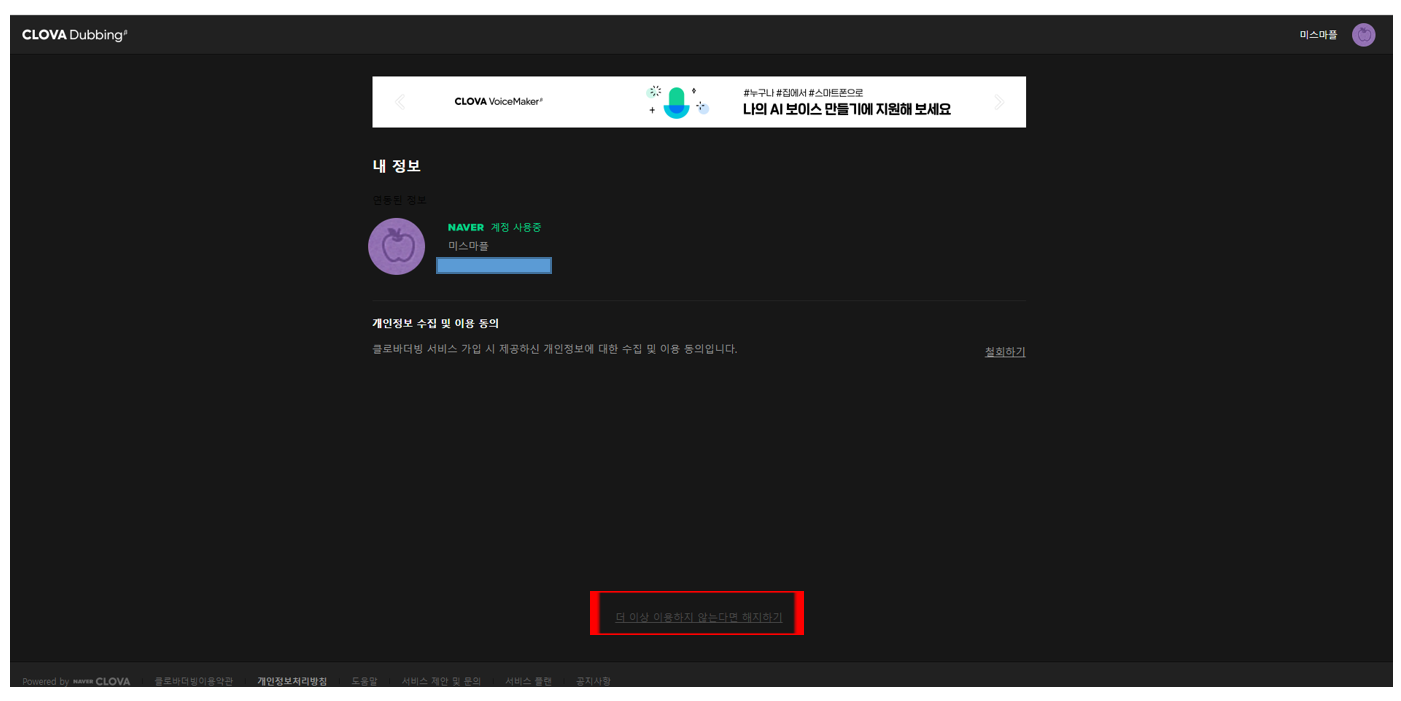 진짜 CLOVA Dubbing 유료 서비스 해지하는 방법