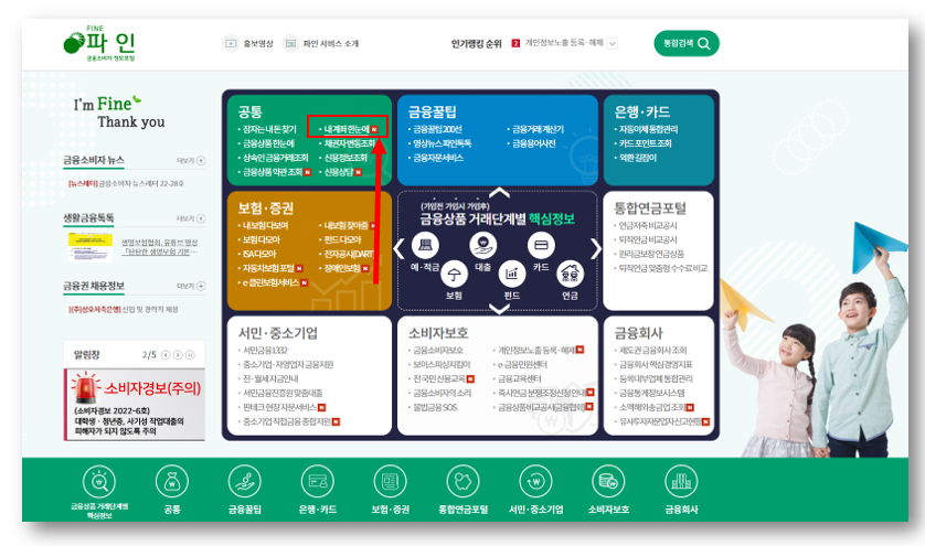 카드 포인트를 한꺼번에 현금화하기 위한 가장 손쉬운 방법은 금융정보 포털 서비스를 제공하는 [파인]에 들어가는 것입니다.
