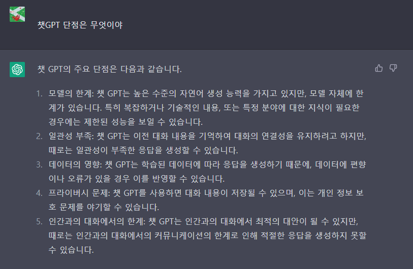 챗GPT 단점이 무엇이야?