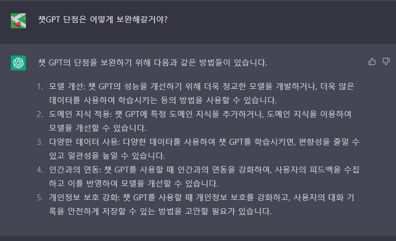 챗GPT의 단점은 어떻게 보완해나갈거야?