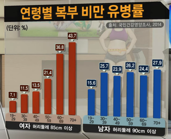내장형 비만, 복부비만은 다양한 질병의 원인으로 건강을 위협하게 되어 아주 위험합니다.
