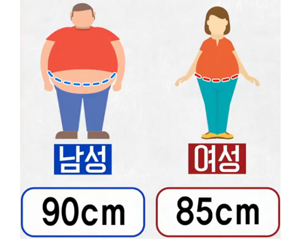 그렇다면 공복 혈당이 계속적으로 올라가는 경우는 어떨까요? 첫번째 범인 내장지방의 경우를 살펴보겠습니다. 내장지방은 간단히 말해서 복부둘레라고 생각하시면 간단합니다. 내장지방이 많다는 것은 나의 저장고가 크고 평소에 당을 많이 저장해 놓았다는 것을 얘기합니다. 그래서 공복상태에서 ‘혈당이 부족해 저축한 당을 내보내‘라고 지시가 내려와서 저장고 문을 조금 열고 당을 필요한 만큼만 꺼내 사용하려고 저장고를 살짝 열었는데 이 저장고에 저축된 당이 많으니까 넘쳐서 우수수 혈중으로 밀려 나오게 되는 것입니다. 왜냐하면 저장고 자체의 양이 많고 크기 때문이입니다. 실제로 임상 연구 결과들에 따르면 내장지방 즉 허리둘레가 남성은 90cm 여성은 80cm 이상 일 때 공복혈당 장애 발생률이 급격히 올라간다는 보고가 있습니다.