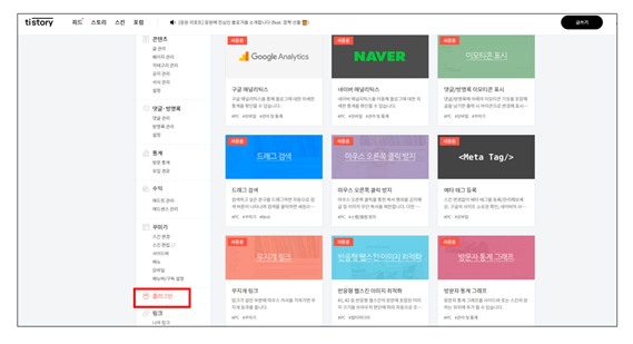 1) 내 블로그 관리에서 [플러그인]을 클릭합니다.