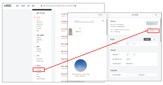 6) 내 블로그의 [블로그 관리]-[스킨편집]-[HTML편집]을 클릭합니다.