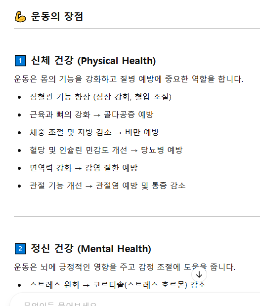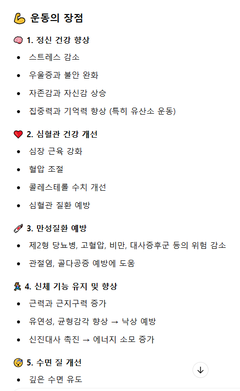 "운동의 장점을 알려줘."