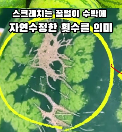 수박 껍질에 스크래치처럼 보이는 갈색 선이 있나요? 이건 수박이 다치거나 상처 난 게 아니라, 꿀벌이 수박을 수분시킨 흔적입니다.