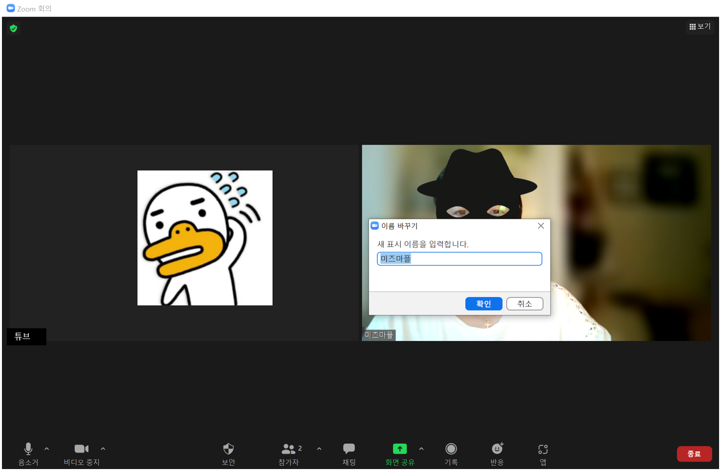 ZOOM회의 참가자일 대 [이름 바꾸기]