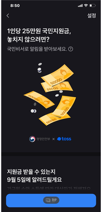 9월 6일부터 10월 26일까지 제5차 국가재난지원금 신청기간인데요. 토스 앱을 통해 자격이 되는지부터 신청까지 한꺼번에 할 수도 있으니 참고하시기 바랍니다
