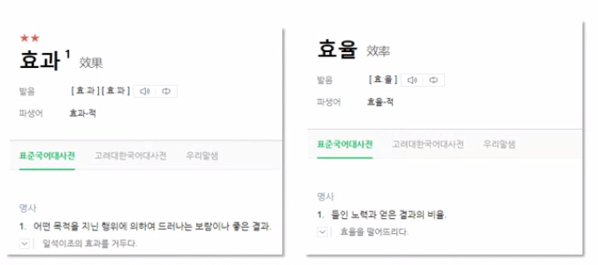 효과(effectiveness)와 효율(efficiency) 사전적 의미