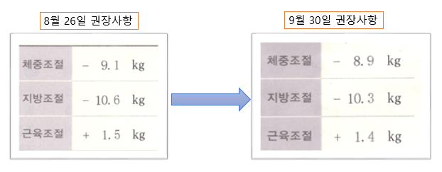 인바디 체중조절 권고사항 비교