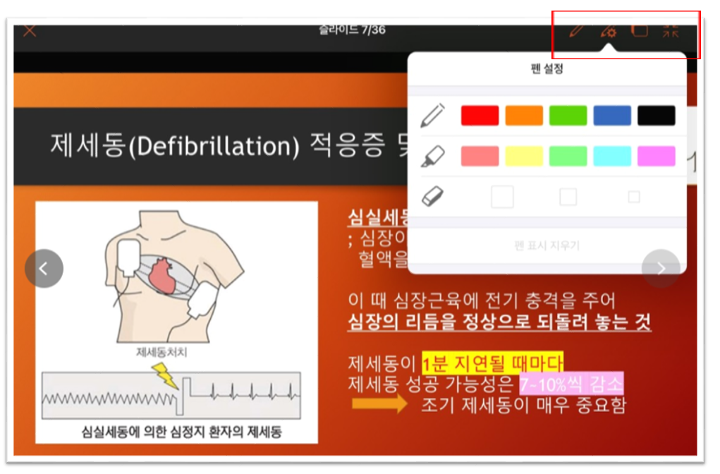 10. 이제 아이패드에 글씨를 쓰거나 그림을 그리면서 발표를 진행하실 수 있습니다.