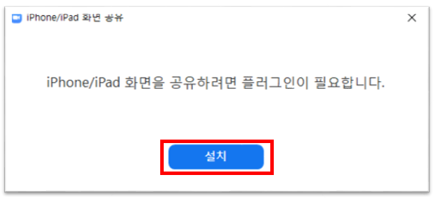 3. iPhone/Pad와 공유하려면 플러그인이 필요합니다.라는 창이 나타납니다. 설치를 클릭합니다.