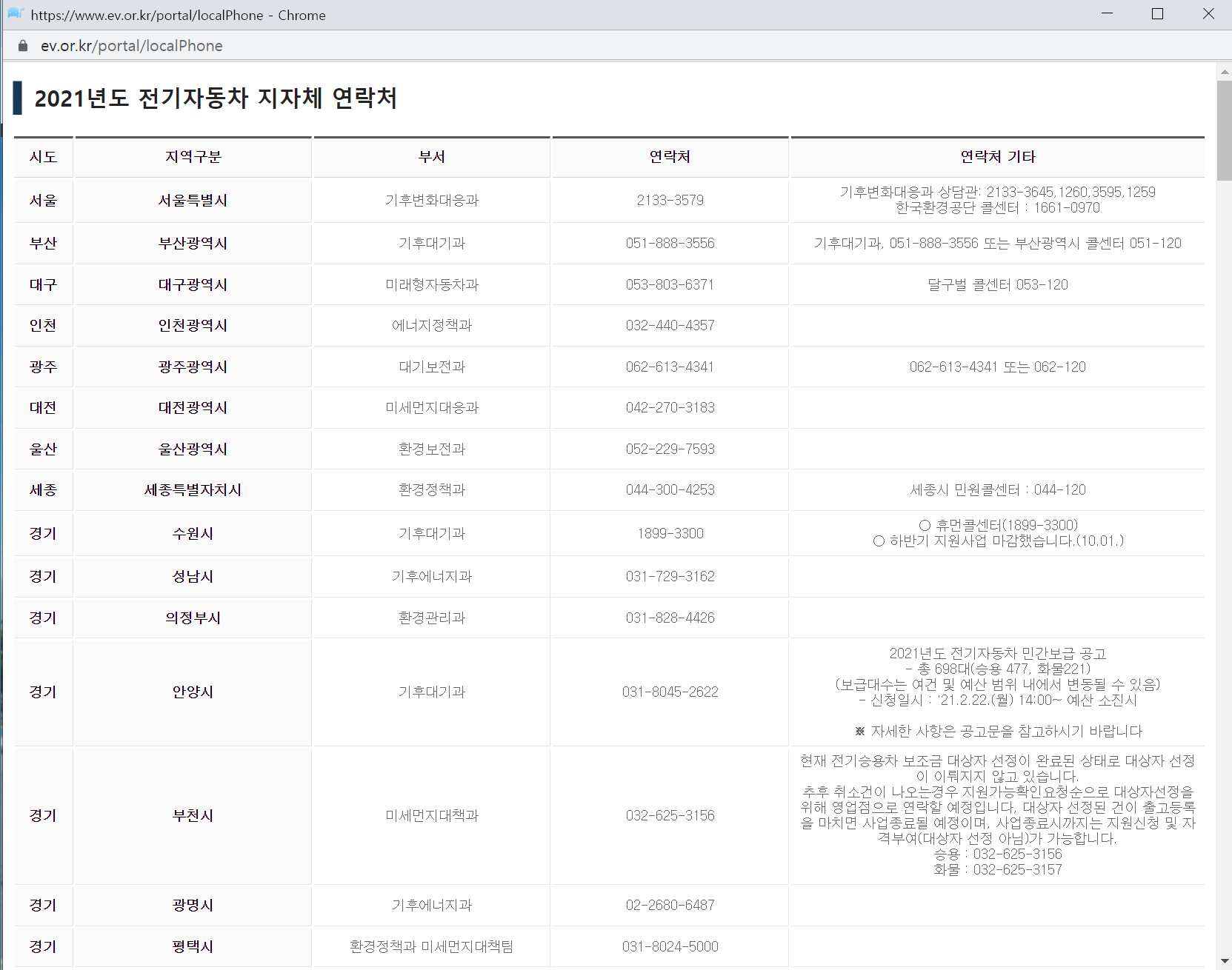 지자체별 문의처는 저공해차 통합누리집 - 저공해차 구매 보조금 시스템으로 들어가면 저공해차 구매보조금 지원시스템이 나오는데 여기에서 확인해 보실 수 있습니다.