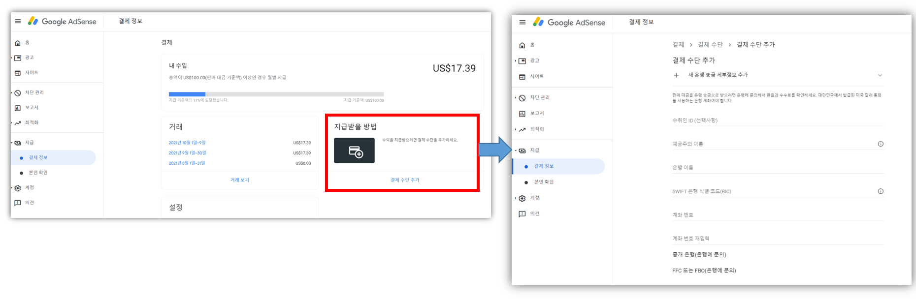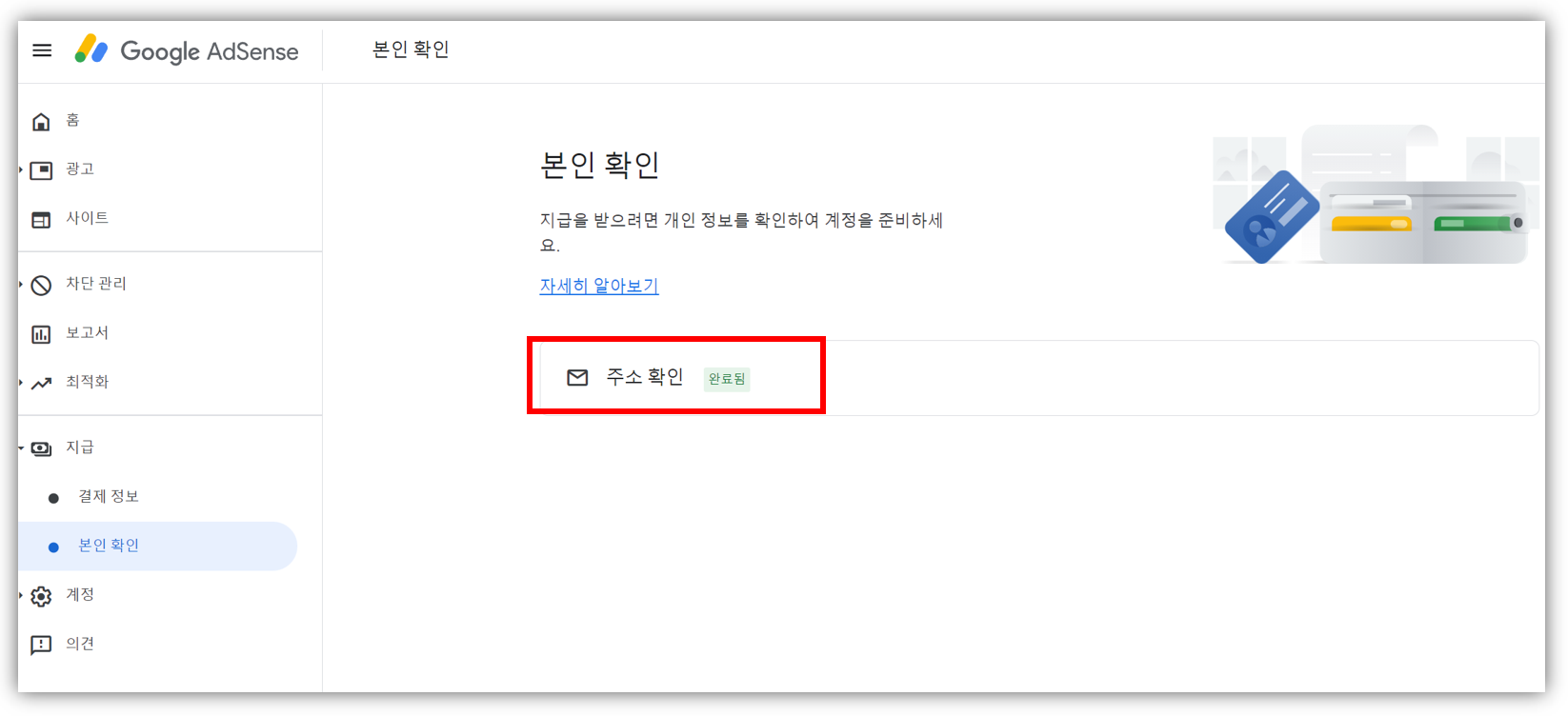 수익금을 지급받을 방법을 선택하여 입력하면 구글 애드센스 광고를 통해 수익을 낼 준비가 완료된 것입니다.