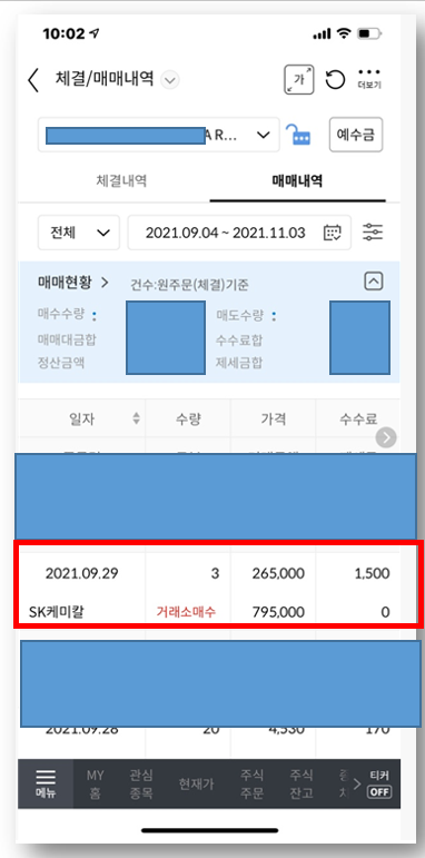 주식을 시작하고 처음으로 SK케미칼 물타기(분할매수)로 34만 원 손실에서 40만 원 수익을 내고 매도했습니다. 물론 분할매수, 분할매도라는 것을 명확하게 이해하고 한 것은 아닙니다. 저는 분할매수를 주식하다가 망하기 쉬운 '물타기'로만 생각하고 있었거든요. 과정은 이렇습니다.