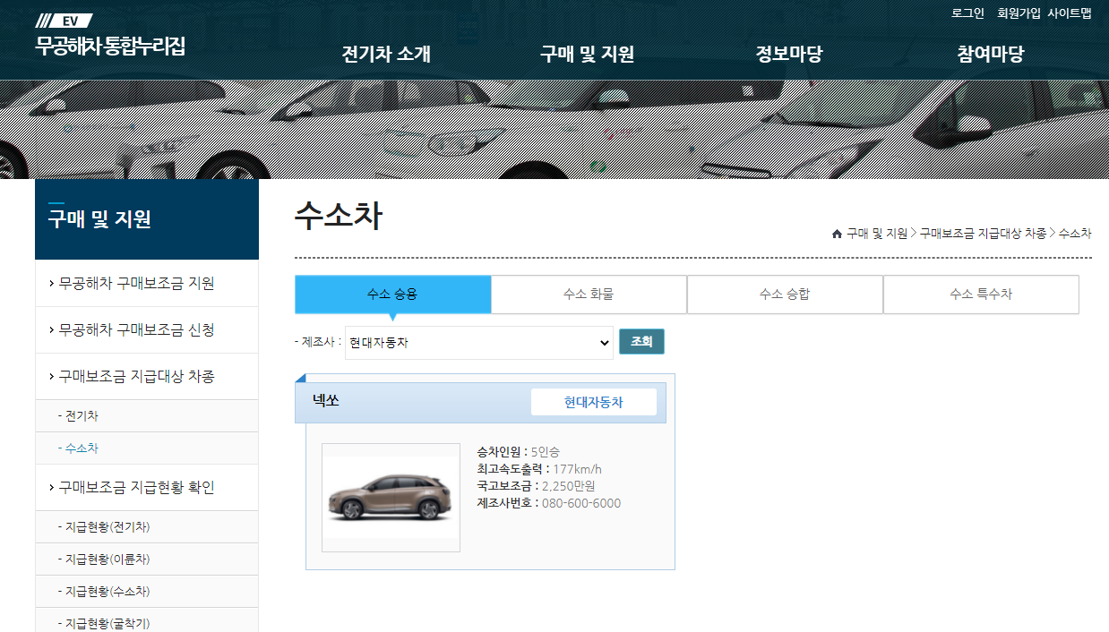 ⨀ 3. 2022년 친환경차 구매지원금 가능 차량 및 지원금 조회