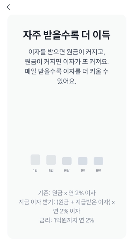 1. 토스뱅크의 [이자받기]는 원금 이자에 이자의 이자까지 받을 수 있는 것입니다.
