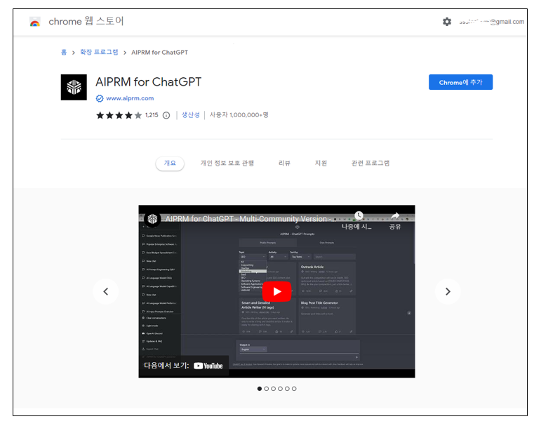 앞에서와 마찬가지로 크롬웹스토어에 AIPRM을 검색하여 확장프로그램에 추가합니다.