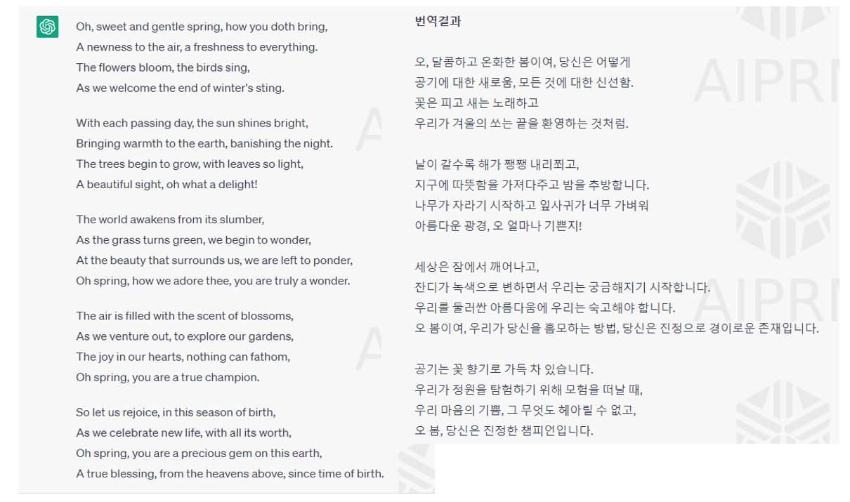 챗GPT가 영어로 번역해서 질문하고 영어로 답변한 다음에 다시 한국말로 번역한 것을 확인할 수 있습니다.