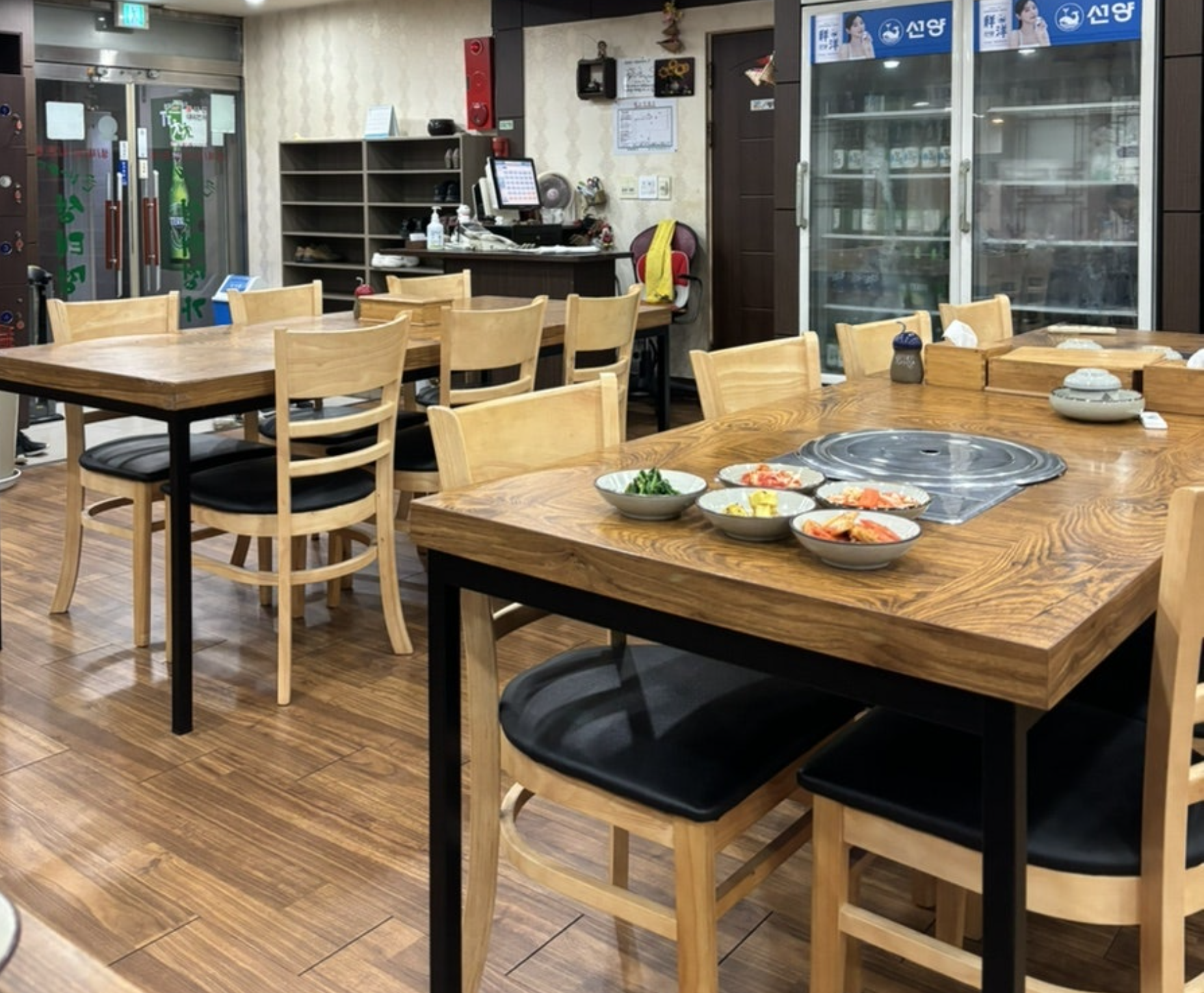 가게에 들어서면 내부는 예전엔 방바닥에 앉는 좌식 형태였다고 하는데, 현재는 입식 테이블로 변경되어 편하게 신발 신고 들어갈 수 있었어요. 전체적으로 넓고 좌석 수가 많아 단체 손님도 거뜬해 보였습니다. 점심 시간대를 지나 1시쯤에 갔더니 점심손님이 모두 빠져나가고 테이블을 정리하고 있어서 여유있게 편안히 식사할 수 있어서 더욱 좋았어요.
